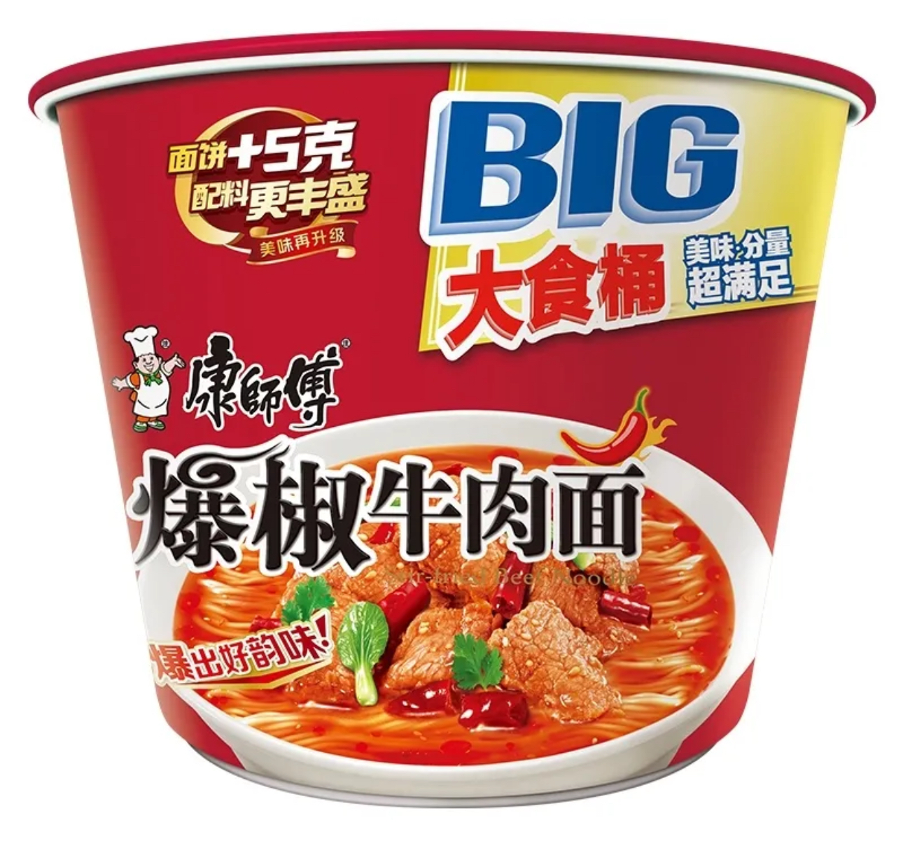 康师傅大食桶爆椒牛肉方便面145g/桶