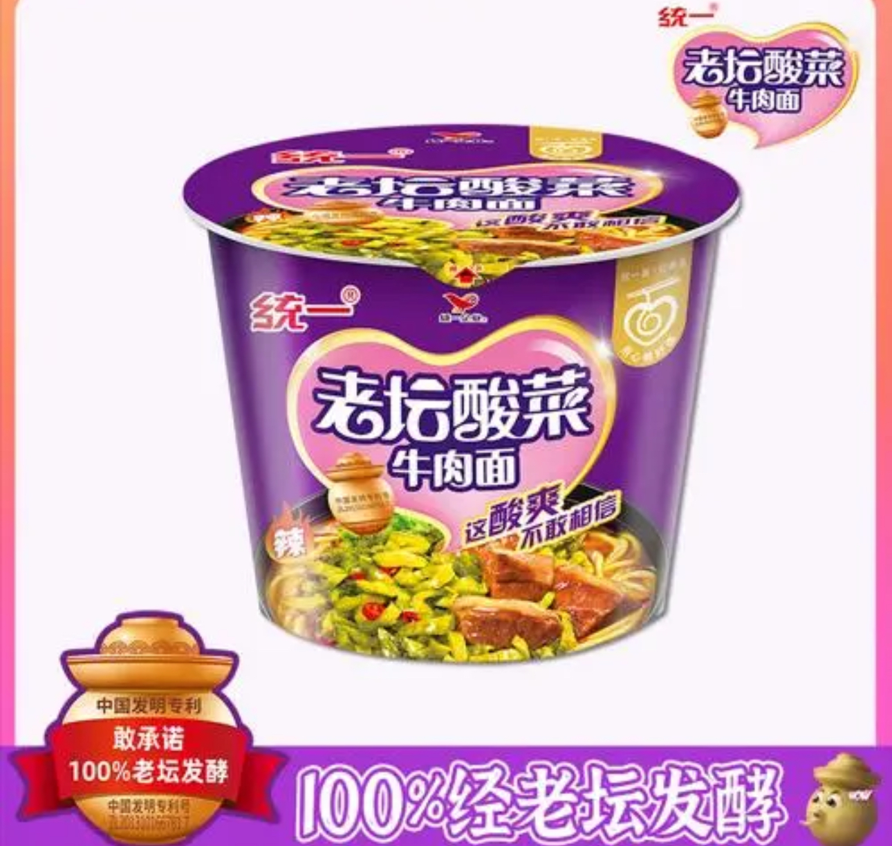 统一来一桶老坛酸菜牛肉面120g/桶