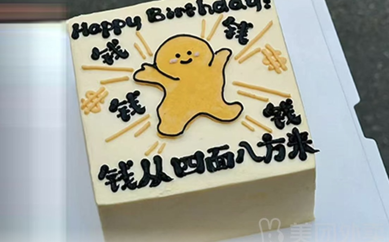 钱啊钱从四面八方来招财小人方形来 财生日蛋糕