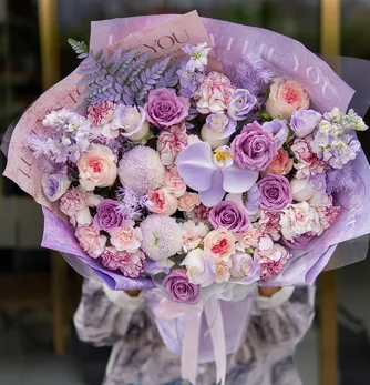 【紫韵流光】28朵混搭紫玫瑰粉玫瑰紫精灵紫色康乃馨花束送朋友长辈生日鲜花礼物送花上门